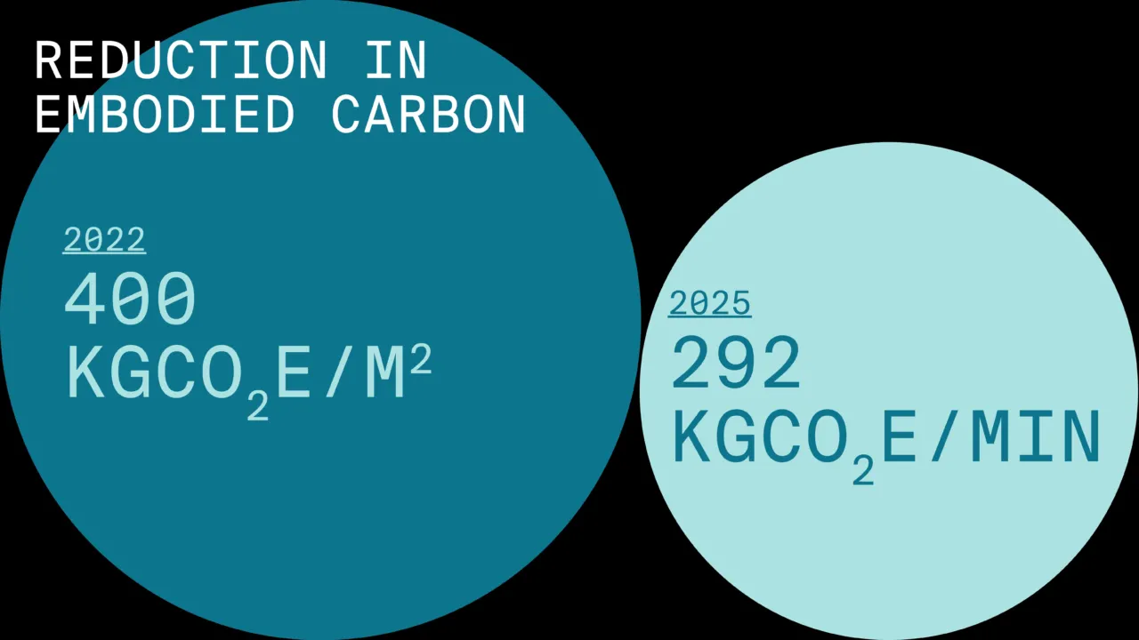 Across SEGRO’s portfolio, average embodied carbon intensity has fallen from 400 kg CO₂e/m² in 2022 to 292 kg CO₂e/m² in 2025. These measurable reductions demonstrate the effectiveness of the tailored LCA methodology and its integration into design and delivery processes.